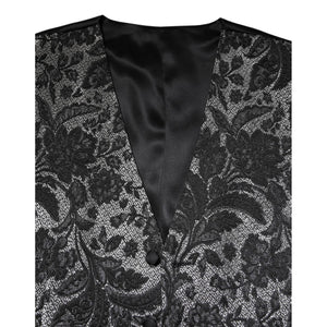 Dolce & Gabbana Black Gray Brocade Formal Men Waistcoat Vest