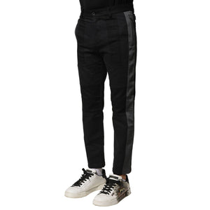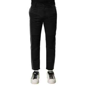 Dolce & Gabbana Black Gray Cotton Tapered Men Pants