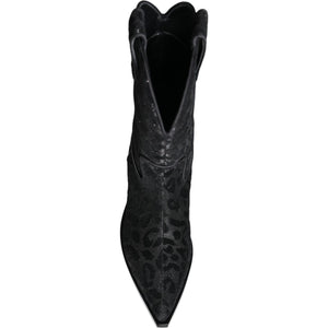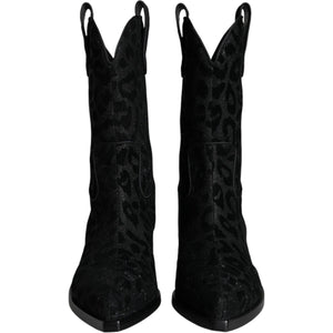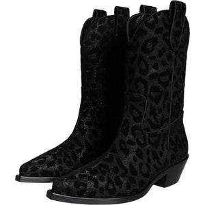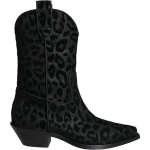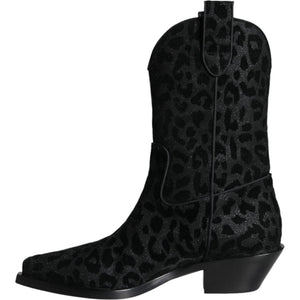 Dolce & Gabbana Black Gray Leopard Cowboy Boots Shoes
