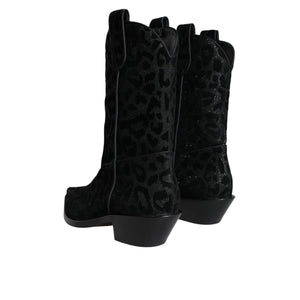 Dolce & Gabbana Black Gray Leopard Cowboy Boots Shoes