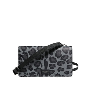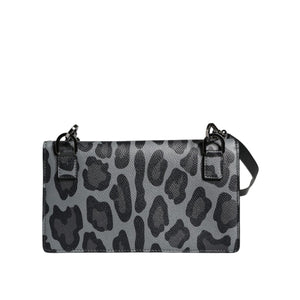 Dolce & Gabbana Black Gray Leopard Leather Bifold Card Slot Crossbody Bag