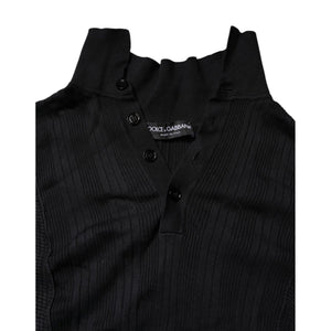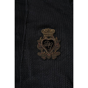 Dolce & Gabbana Black Heraldic Silk Buttoned Pullover Sweater