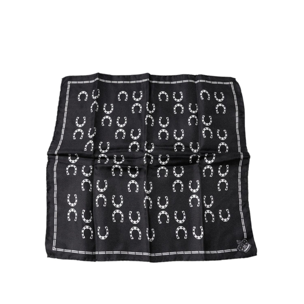 Dolce & Gabbana Black Horseshoe Silk Square Handkerchief Scarf