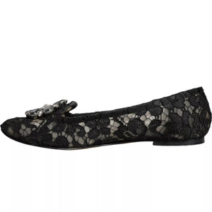 Dolce & Gabbana Black Lace Crystal Ballet Flats Loafer Shoes