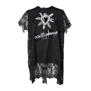 Dolce & Gabbana Black Lace Sheer Sacred Heart Crew Neck Top