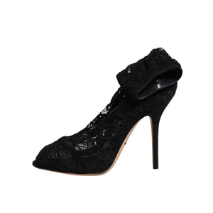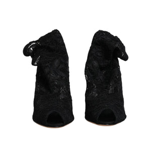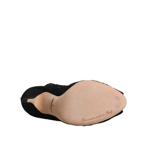 Dolce & Gabbana Black Lace Stretch Heels Mid Calf Boots Shoes