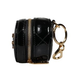 Dolce & Gabbana Black Lamb Leather DG Crystal Round Coin Purse Wallet