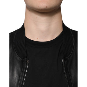 Dolce & Gabbana Black Lambskin Full Zip Biker Blouson Jacket