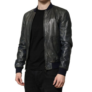 Dolce & Gabbana Black Lambskin Leather Biker Full Zip Jacket