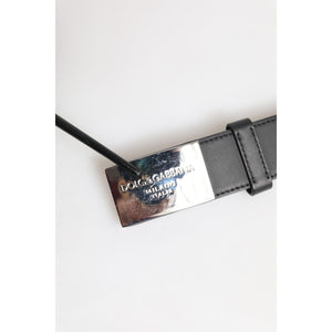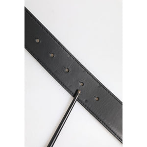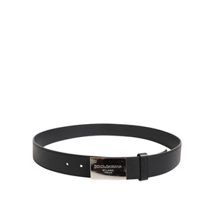 • Dolce & Gabbana Black Leather Classic Metal Logo Buckle Belt