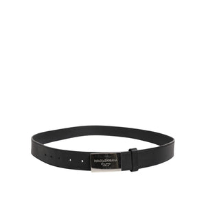 Dolce & Gabbana Black Leather Classic Metal Logo Buckle Belt
