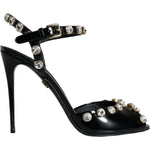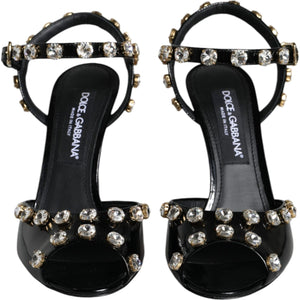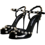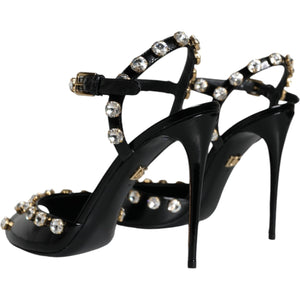 حذاء صندل من الجلد الأسود بحزام للكاحل من دولتشي آند غابانا