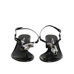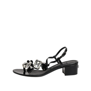 Dolce & Gabbana Black Leather Crystal Ankle Strap Sandals Shoes