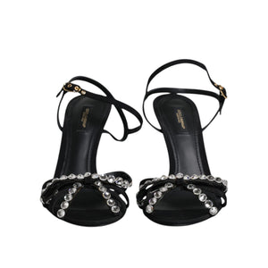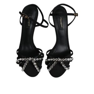 Dolce & Gabbana Black Leather Crystal Bow KEIRA Sandals Shoes
