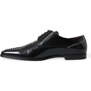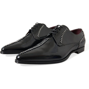 حذاء رسمي من الجلد الأسود من دولتشي آند غابانا مزين بالكريستال