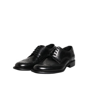 Dolce & Gabbana Black Leather Derby Wingtip Formal Shoes