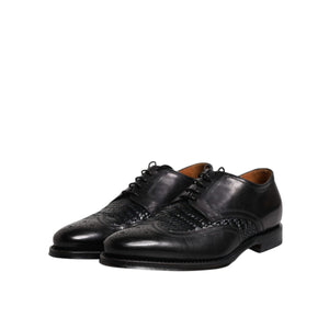 Dolce & Gabbana Black Leather Derby Wingtip Lace Up Formal Dress Shoes
