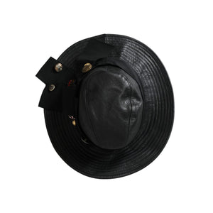 قبعة دولتشي آند غابانا ذات الحواف العريضة من الجلد الأسود مع قطعتي كريستال