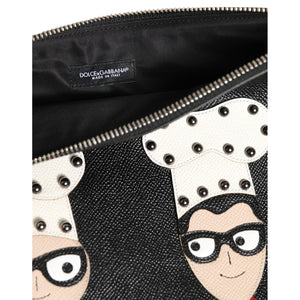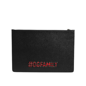 Dolce & Gabbana Black Leather #DGFAMILY Embellished Men Clutch Pouch Bag