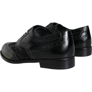 حذاء رسمي من دولتشي آند غابانا مصنوع من الجلد الأسود ومزين بزهور من الدانتيل