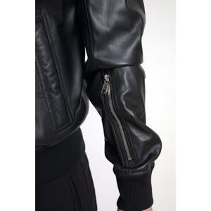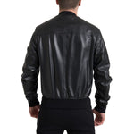 Dolce & Gabbana Black Leather Full Zip Bomber Men Jacket