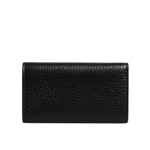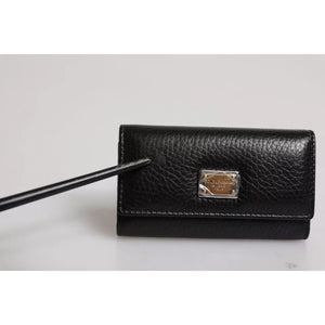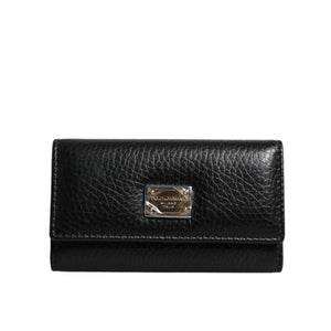 Dolce & Gabbana Black Leather Gold Metal Logo Plaque Trifold Keyring