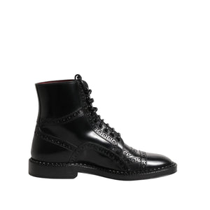 Dolce & Gabbana Black Leather Lace Up Mid Calf Boots Shoes