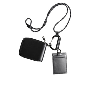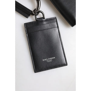 Dolce & Gabbana Black Leather Lanyard Zip Around Card Holder Wallet
