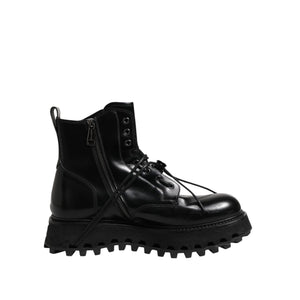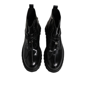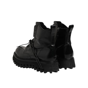 Dolce & Gabbana Black Leather Logo Ankle Boots Lace Up Shoes