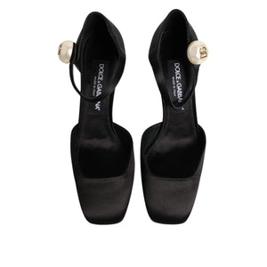 Dolce & Gabbana Black Leather Logo Ankle Strap Sandals Shoes