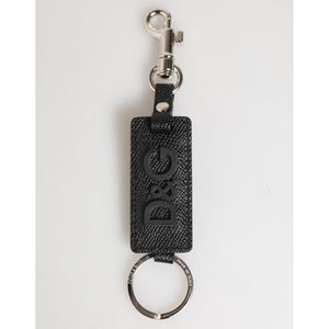 Dolce & Gabbana Black Leather Logo Metal Ring Keychain Holder Keyring