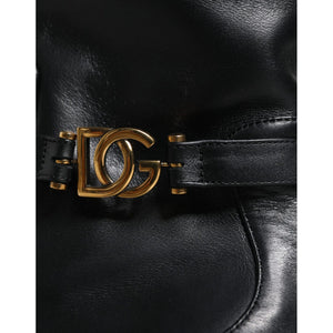 Dolce & Gabbana Black Leather Logo Mid Calf Boots Shoes