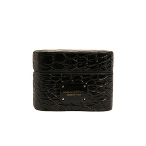 Dolce & Gabbana Black Leather Metal Logo Plaque Holder Airpods Case