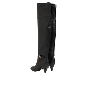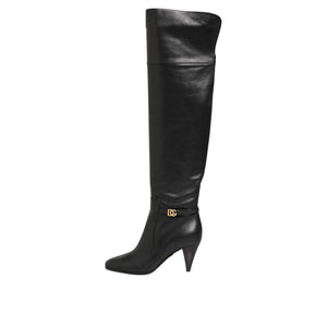Dolce & Gabbana Black Leather Over-The-Knee DG Boots Shoes