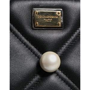 Dolce & Gabbana Black Leather Pearl Embellished Logo Shoulder Bag