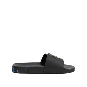 Dolce & Gabbana Black Leather Slides Flats Beachwear Shoes