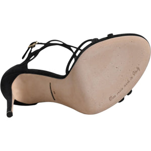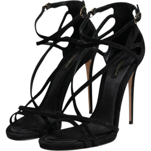 Dolce & Gabbana Black Leather Stiletto Heels Sandals Shoes