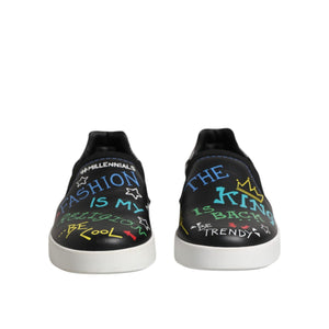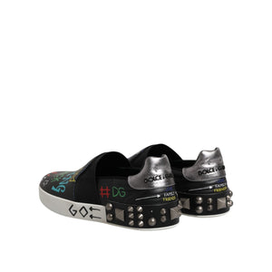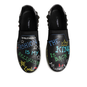 Dolce & Gabbana Black Leather Studded Graffiti Sneakers Shoes