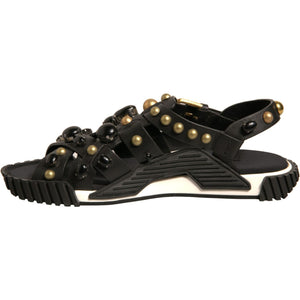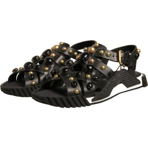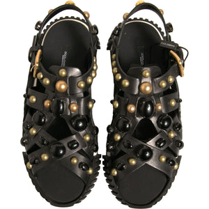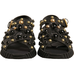 Dolce & Gabbana Black Leather Studded Slides Sandals Shoes