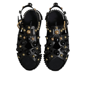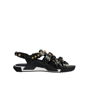 Dolce & Gabbana Black Leather Studded Slides Sandals Shoes