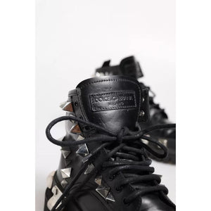 Dolce & Gabbana Black Leather Studded Trekking Boots Shoes