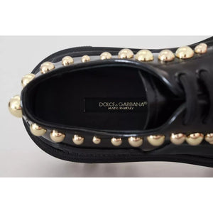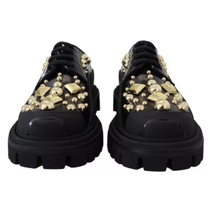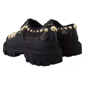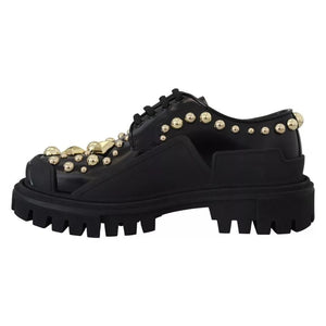 Dolce & Gabbana Black Leather Trekking Derby Embellished Shoes