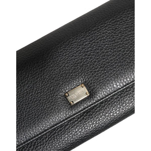 Dolce & Gabbana Black Leather Trifold Logo Plaque Card Holder Wallet