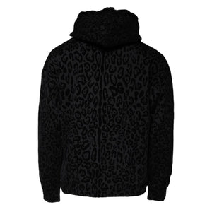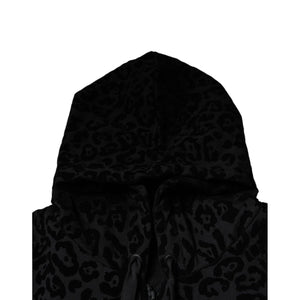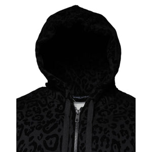 Dolce & Gabbana Black Leopard Cotton Hooded Full Zip Sweater