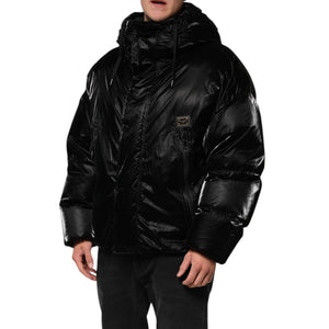 Dolce & Gabbana Black Logo Full Zip Hooded Quilted Jacket