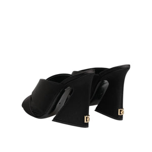 Dolce & Gabbana Black Logo KEIRA Satin Slides Sandals Shoes