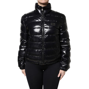 Dolce & Gabbana Black Logo Plaque Full Zip Puffer Jacket