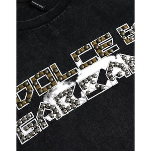 تي شيرت رجالي من Dolce & Gabbana مطبوع عليه شعار Dolce & Gabbana باللون الأسود من القطن برقبة دائرية