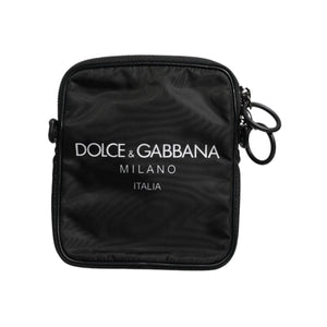 Dolce & Gabbana Black Logo Print Scuba Crossbody Shoulder Bag