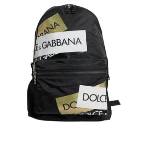 Dolce & Gabbana Black Logo Tape Polyamide School Travel Backpack Men Bag